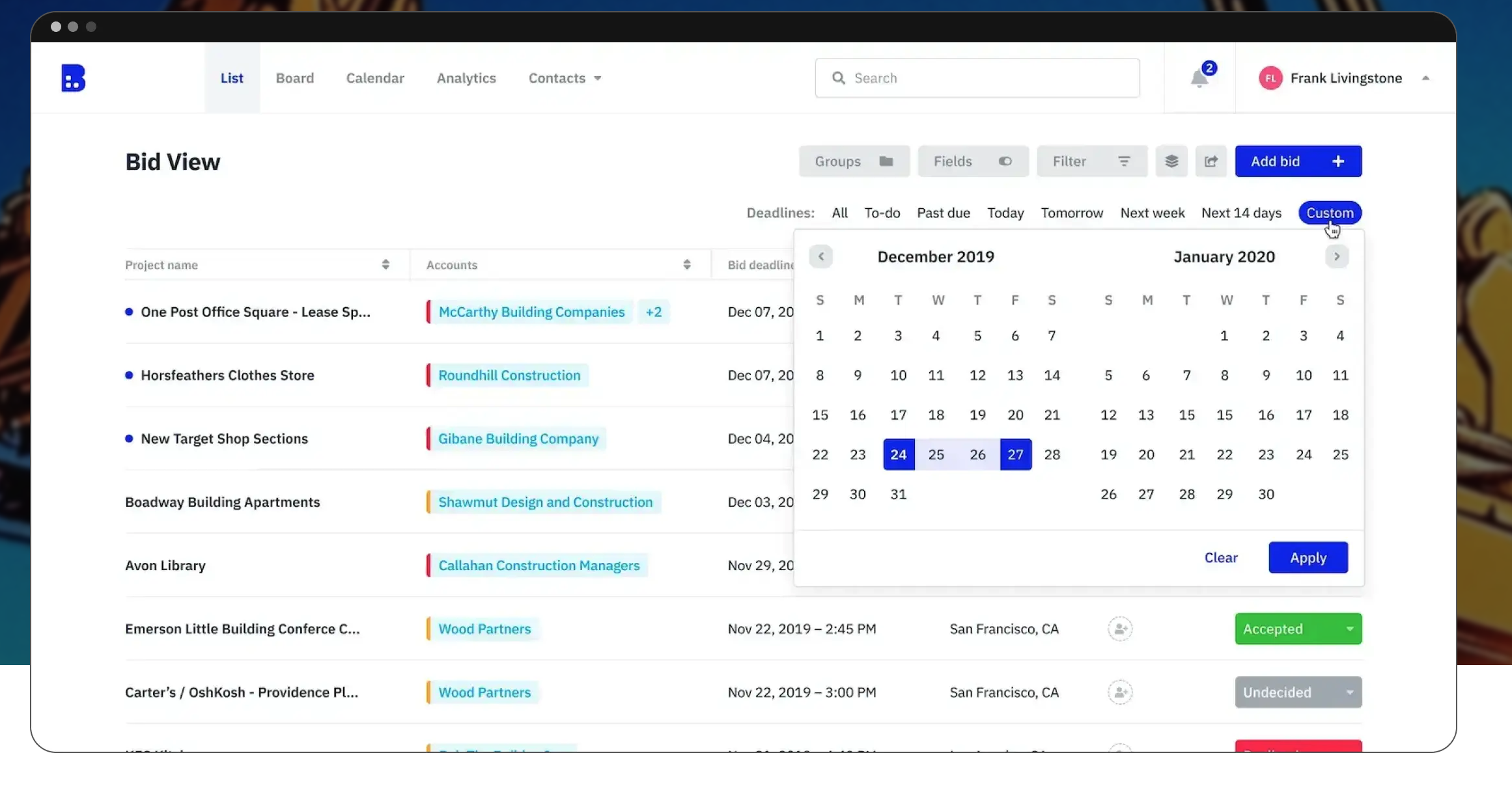 Project timelines become visual and manageable instead of scattered across multiple email conversations. You can see which bids need immediate attention and which ones have comfortable deadlines for thorough preparation.